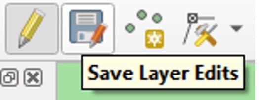 You can now click the Toggle Editing icon to turn editing off. If you haven’t already saved your edits, QGIS will ask you if you want to save before turning editing off.