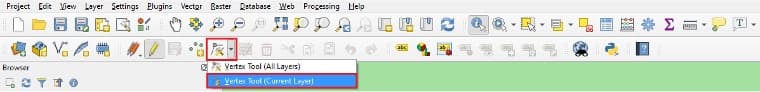 Find the Vertex Tool, located in the editing toolbar towards the top of the screen. Left-click to select. This will allow us to edit the vertices of our layer – in this case, our points.