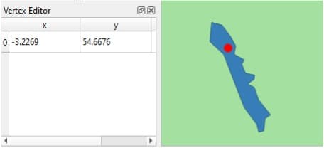 Navigate to the point on your map that you just created, then hover over the point with your mouse and right-click on it. This opens the Vertex Editor at the bottom left of your screen, showing the point’s coordinate data.