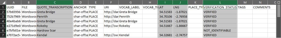- Make sure you save your changes to the Wordsworth-Recogito.csv file.