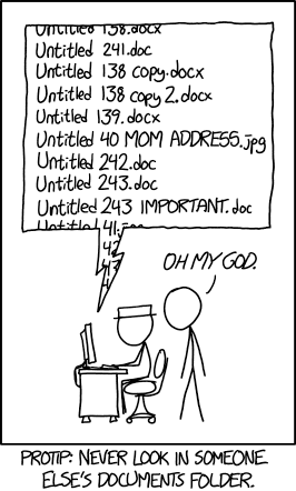 Abbildung: “Protip: Never look in someone else’s documents folder”, von Randall Munroe, xkcd.com, lizenziert unter CC-BY-NC 2.5.
